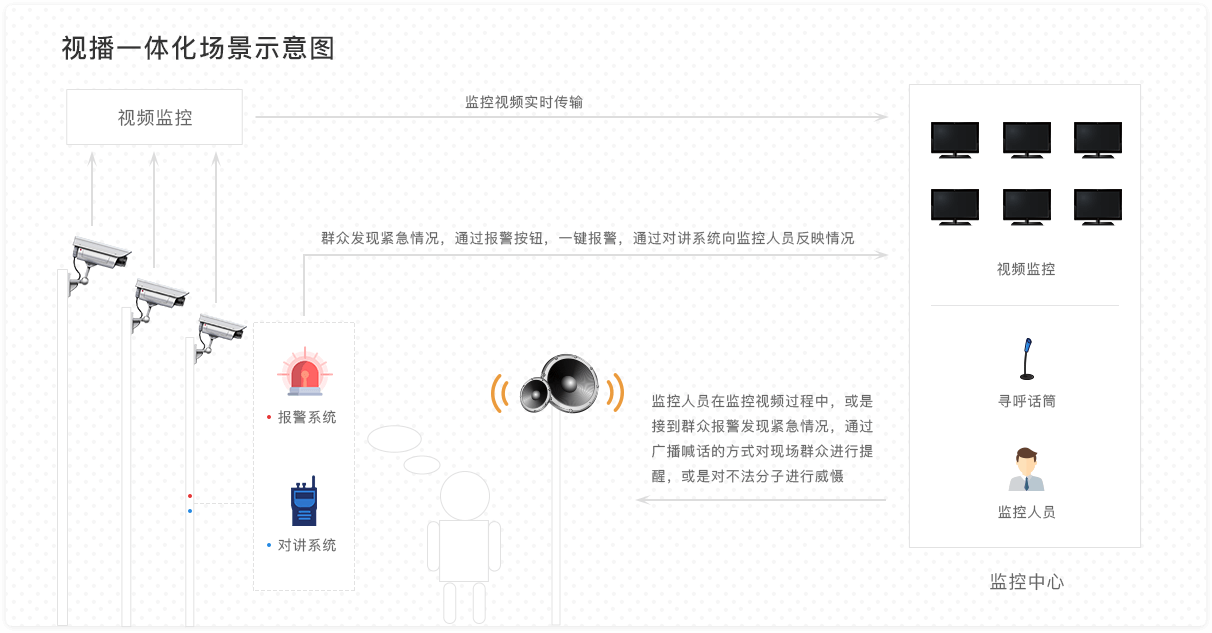 如今广电集客业务正在飞速开展,顺利获得广电网络可实现应急广播与其他智慧类业务如智慧社区、雪亮工程,建设视播一体化平台,使其有机结合,相互促进,进一步提高城市的管理能力。