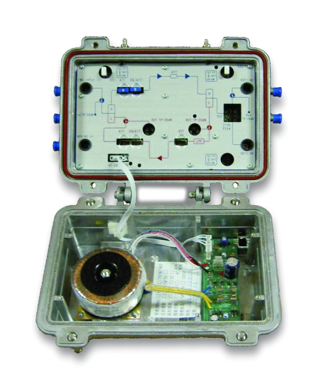 Overview        TGM2800F bi-directional amplifier can be used in CATV network, digital network and telecom network with high gain, low distortion and excellent flatness.Front end adopts high-quality,low-noise and high-linear GaAs chip amplifier. the output adopts imported special CATV power multiplier amplification module. It can be used as a amplifier or a distribution amplifier in bidirectional CATV system and it can also be used as bridging amplifier in the EOC system. Output port branch or distribution are optional. Features         Input stage adopt special CATV high-quality GaAs integrated amplifier,reducing the noise figure