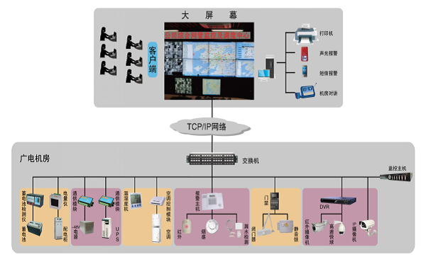 路通视信利用产品及软件研发的优势,给予的广电机房动环监控系统解决方案,并配置短信报警或者手机客户端,对机房内的重要报警信息(如停电)在第一时间发至指定人员手机,进行紧急事故处理,有效解决了以上问题,以顺利获得保证基础设施的稳定运行来保障整个网络的稳定安全播出。这一点,对于无人值守机房尤为重要。
